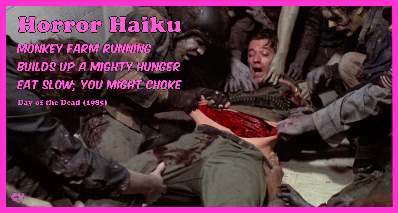 Horror Haikus, Zombies Horror Haiku – Day of the Dead February 20, 2015 Doc Leave a comment Share this shit! Click to share on X (Opens in new window) X Click to share on Facebook (Opens in new window) Facebook Click to share on Reddit (Opens in new window) Reddit More Click to share on Tumblr (Opens in new window) Tumblr Click to share on Pinterest (Opens in new window) Pinterest Like Loading... Related