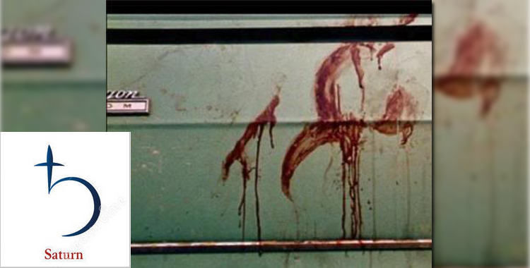 After they kick the hitchhiker out of their van, he smears some sort of symbol on the door in his blood. For years this has bugged me; pointless imagery to invoke fear or secret insignia with deeper meaning? I Googled the symbol for Saturn (for the heck of it) and this is what I found. They don’t necessarily look similar to me, but I’ll let you be the judge: