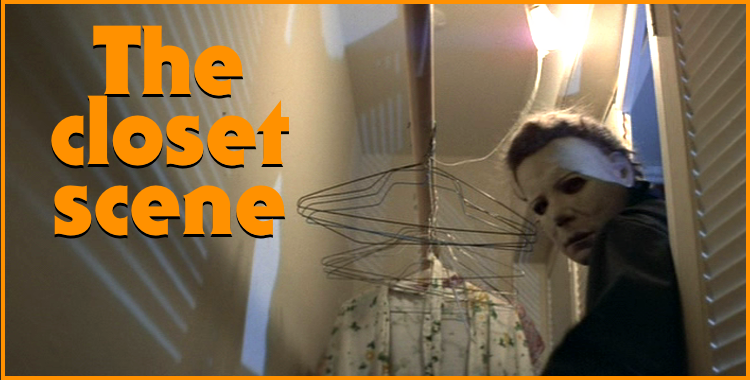 Last but certainly not least, the closet scene. In the final act of the film, in a desperate attempt to escape the relentless Myers, Laurie locks herself in a cramped little closet. We see Michael’s shadow through the slats in the door. Soon, he starts tugging at it. Getting nowhere, he starts punching through the slats. Laurie is trapped! Michael hits the lightbulb, looks around, spots Laurie on the floor, and turns off the light.