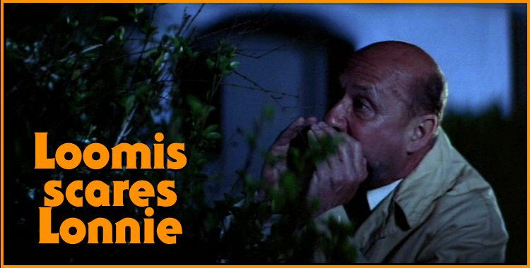This is one of my favorite moments in the film, and one of only two times in the entire series we actually see Dr. Loomis crack a smile (the other is when he’s drinkin’ in the truck with Rev. Jack Sayer, in Halloween 4.) Loomis, whispering creepily from behind a bush, manages to scare the piss out of Lonnie Elam and his buddies who are trying to sneak into the old Myers place. Lonnie Elam is the little prick who, along with his cohorts, bullies poor Tommy Doyle earlier in the film, causing him to trip and fall on top of the pumpkin he was carrying, smashing it to pieces. Even before that, Laurie Strode remarks, “Lonnie Elam probably won’t get out of the sixth grade.” That would have been killer foreshadowing if Michael Myers actually ended up doing away with ol’ Lonnie, but alas, Loomis’ scare is as close as he gets to a comeuppance. What’s Lonnie doing nowadays? Probably tending bar somewhere is Russellville.