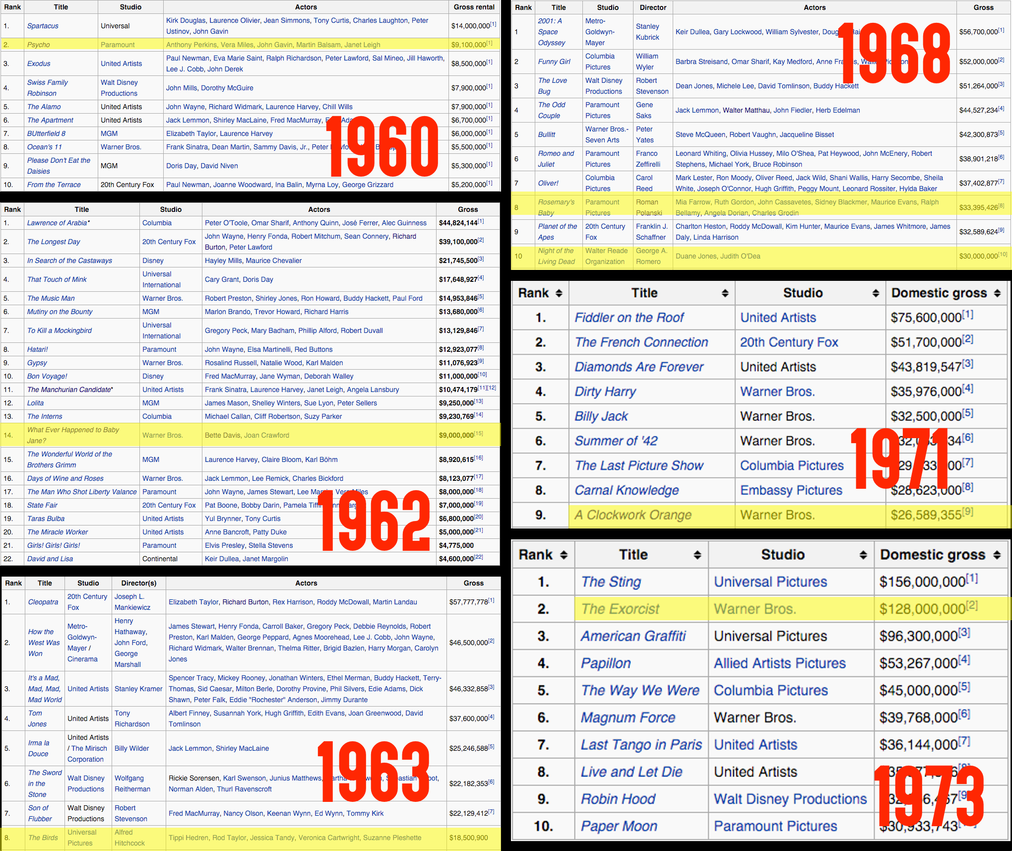 At one time, intelligent and challenging horror movies were just part of the garden variety you’d find at the cinema. They were commonplace. They weren’t made with a teenager’s interests in mind, they were made for a blanket audience of bright and discerning moviegoers who wanted to escape reality for a few hours, be entertained, and leave the theater talking about what they’d just seen, maybe even for the next few weeks. They were political, they were subversive, they were shocking. I made a handy chart to illustrate my point. Look at the titles; arguably none of these films were made with a teenage audience in mind – and they’re unequivocally some of the greatest horror films ever made.
