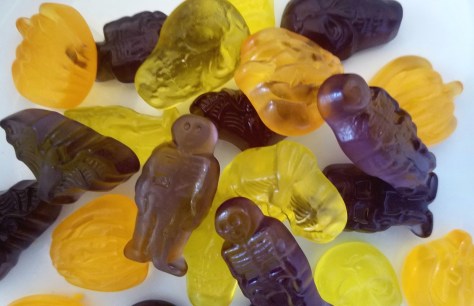 That being said, I can appreciate what Haribo did with their “Ghostly Gummies”. Four different designs—a bat, a skeleton, a pumpkin, and a skull—in colors like yellow, orange, and purple-black. For not doing anything new with the recipe, they did a good job of a switching up the presentation.