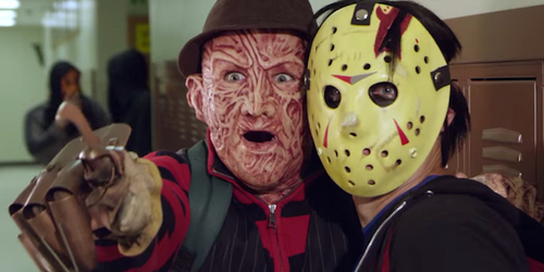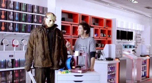 I don’t remember when this DirecTV ad came out – I think about a decade ago. I’m fairly certain it was the first time Jason and Freddy were used in a commercial to sell something (besides Freddy promoting his own product – a hotline number – way back in 1988). And it’s cool, even if it is shilling cable TV. I recall being amped when I first saw it, the giddiness of my inner six year old being woken up, like it was the first time I’d seen Jason on TV. Of course, that was just the beginning. Since then, Jason Voorhees has been used in several commercials – here and abroad – to promote everything from the fast food I mentioned earlier to electronics no one needs or wants. Jason loves Radio Shack and their 3D printers. (I wonder if that was an incredibly clever nod to Friday the 13th III, or just a lucky accident? I’m gonna go with the latter.)