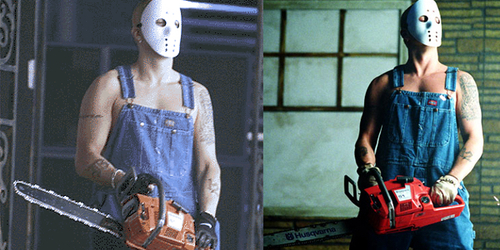 This is not an old memory from my childhood. This is a pretty recent and wonderful use of Jason. It’s for the pop punk song “I Don’t Wanna Be An Asshole Anymore” by The Menzingers, and I love it. The song is totally catchy and the video – which sees Jason trying to overcome his homicidal tendencies so he can meet a girl – is a blast! It fits the lyrical content perfectly, and it’s just a really funny, really well done video overall. It was directed by Whitey McConnaughy (no relation to Matthew, that I’m aware of) who directs music videos and commercials, and was part of the Jackass camera crew at one time. And see what I said about the chainsaw connection? Just another example.